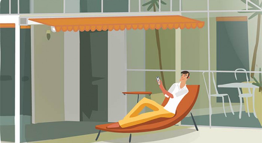Sun? Your sensor opens your awning automatically to protect your patio and your home of sun and heat.