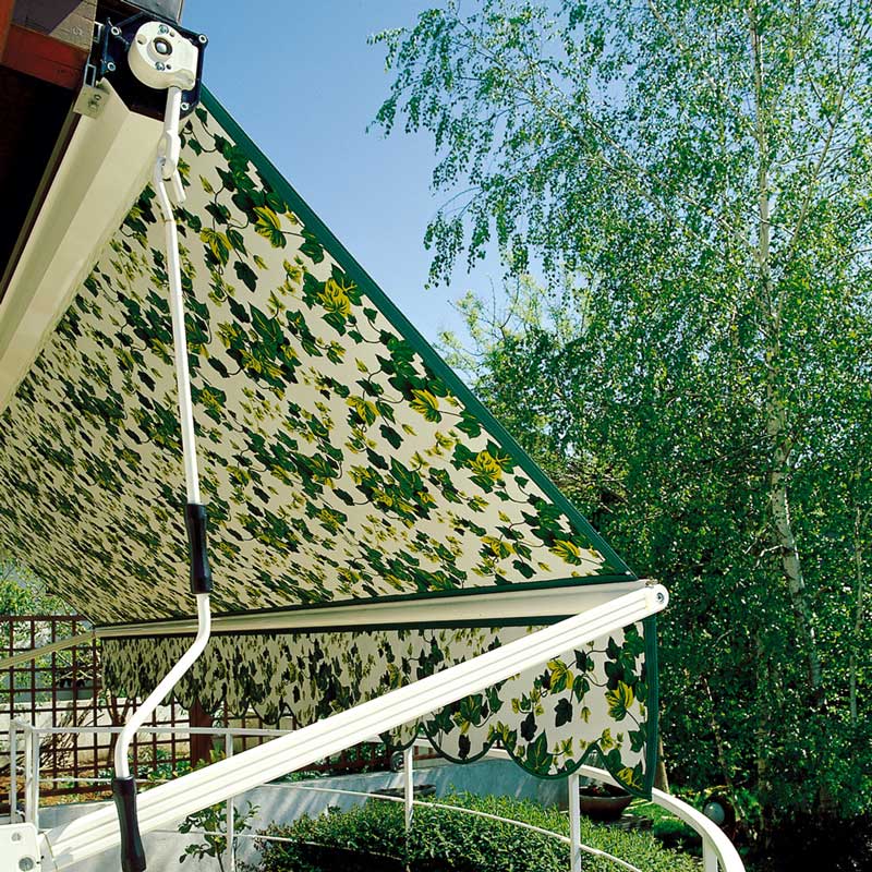 This awning without protective box is suitable for places where there is some kind of eaves, patio eaves or some other protection, to guards the awning’s fabric as long as possible.