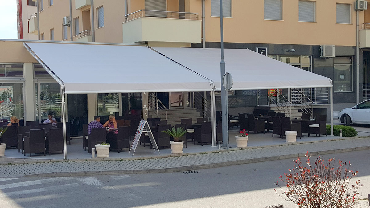 An ideal solution for terraces, balconies and small patios. In particular it’s versatile for commercial activities. As it is very strong it can cover wide surfaces with several modules.