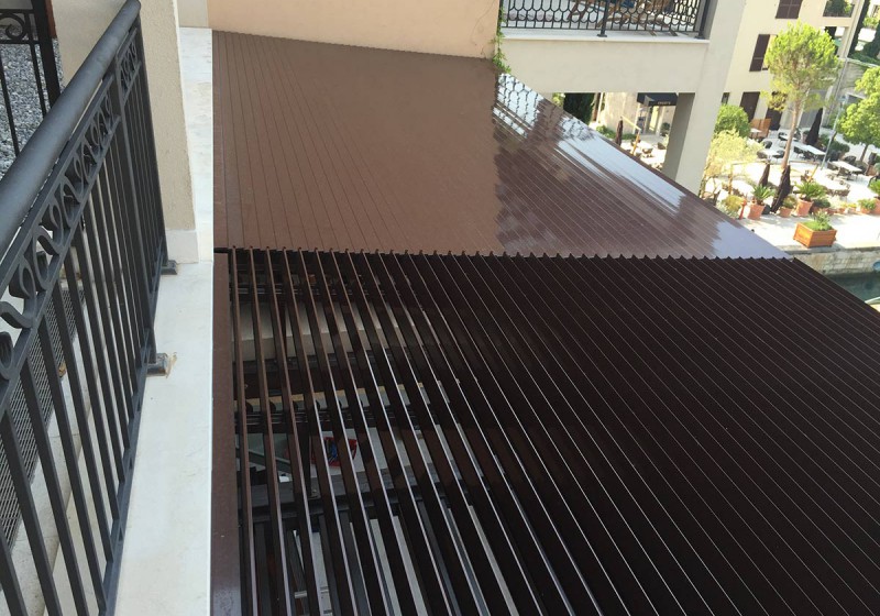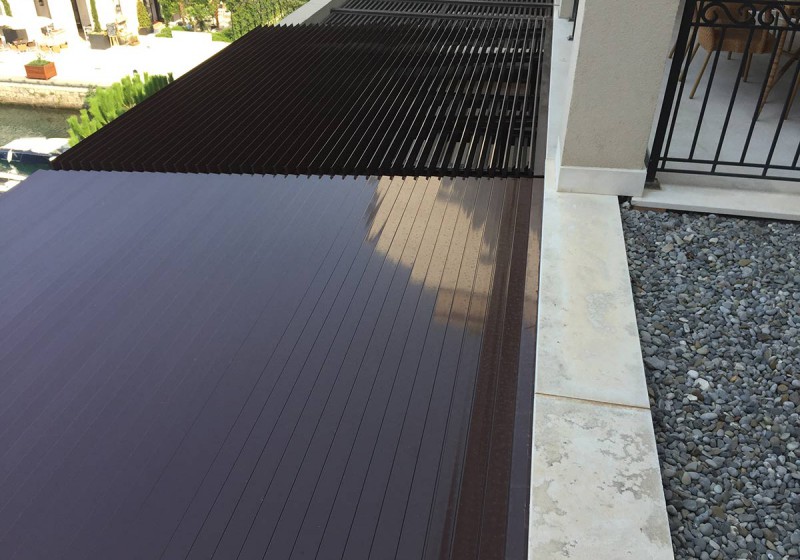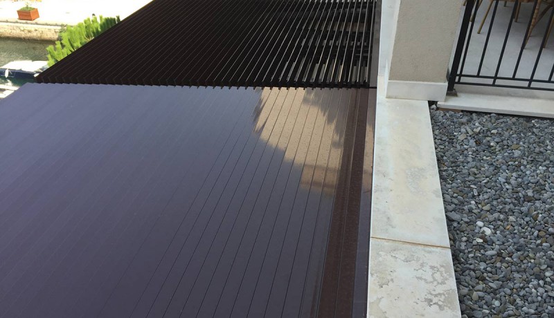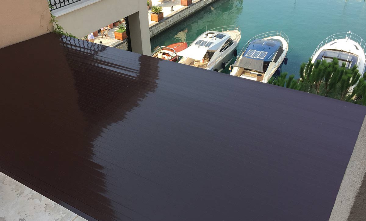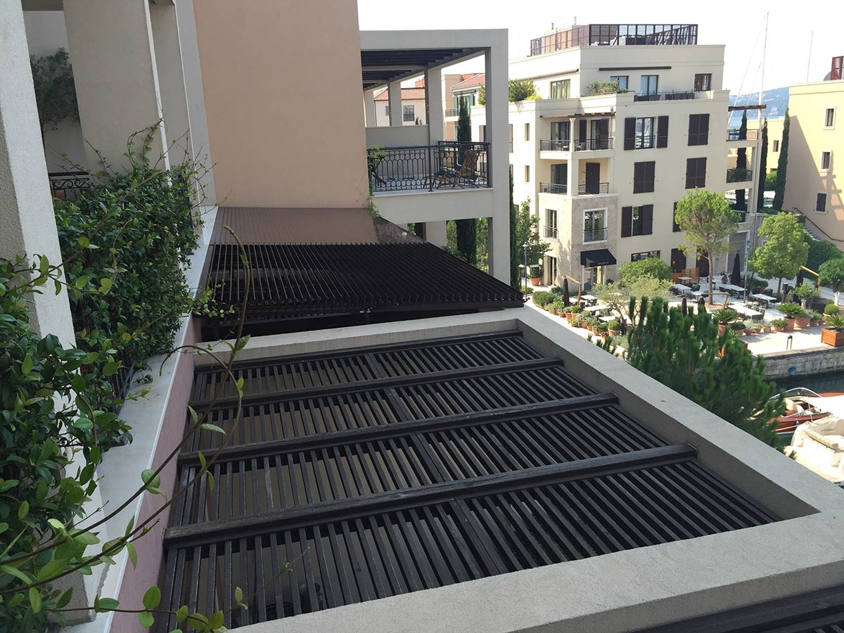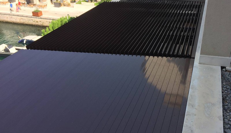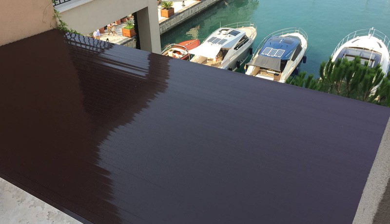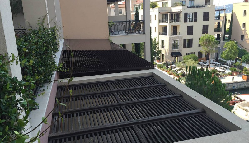 Novitet u Porto Montenegru- Raicover sistem za zastitu od kise i sunca montirali smo iznad postojecih drvenih Pergola. Sada je na ovim terasama hladno ljeti i suvo zimi.