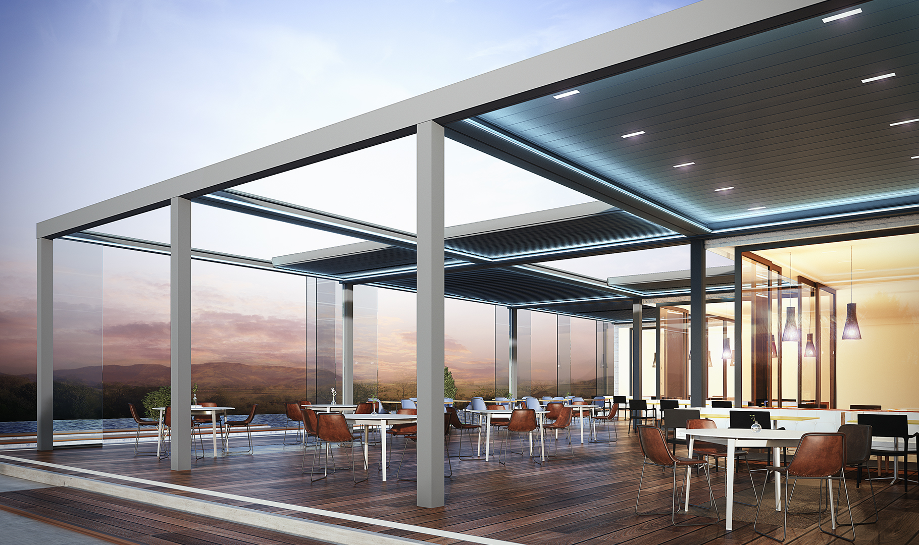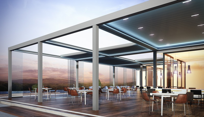 Revolucija u proizvdima za zastitu od kiše i sunca! Novi aluminijumski pokretni krov izuzetnog dizajna, sa mnogo mogucnosti. Ravnih elegantnih linija, savršeno se uklapa u sve prostore.