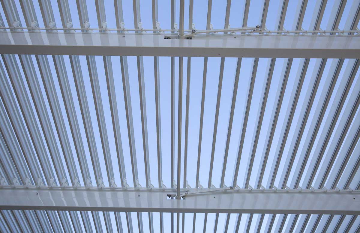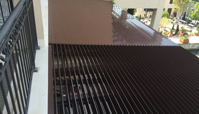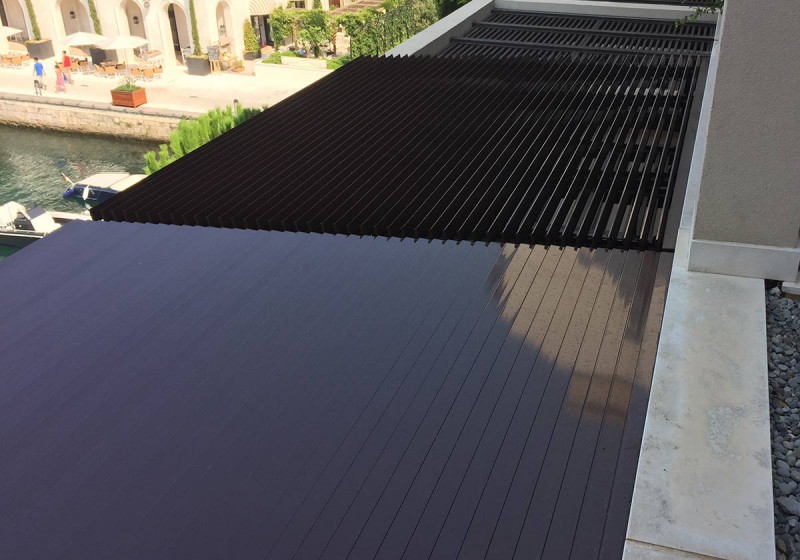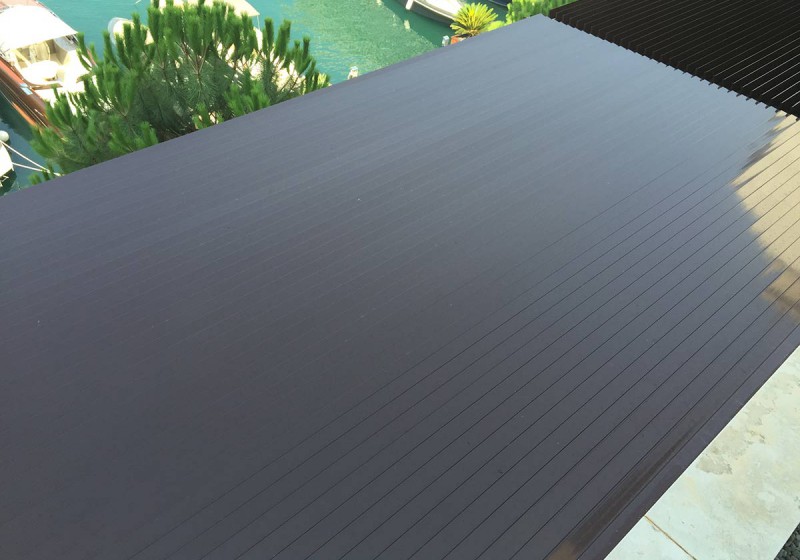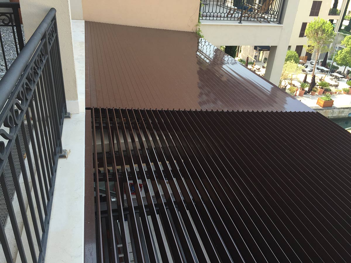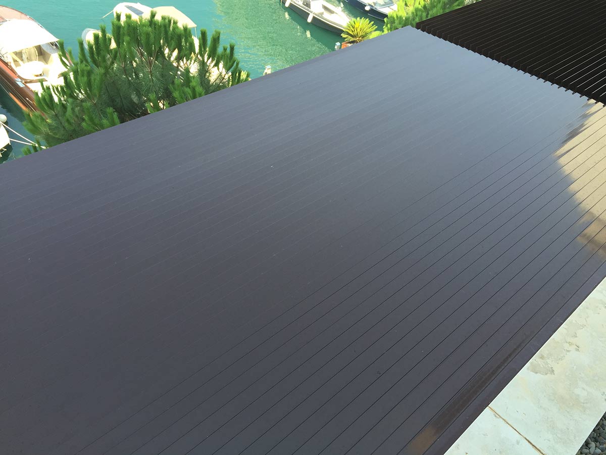 Zahvaljujući tome što je izgrađen od aluminijskih šipki čija pozicija može da se reguliše, ova struktura se perfektno zatvara garantujući maksimalnu zaštitu od sunca i perfektno zadržavanje kiše (do 6mm/h).