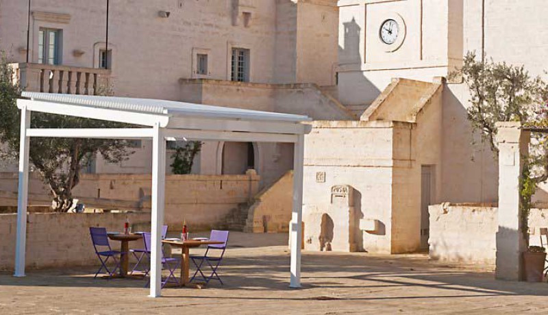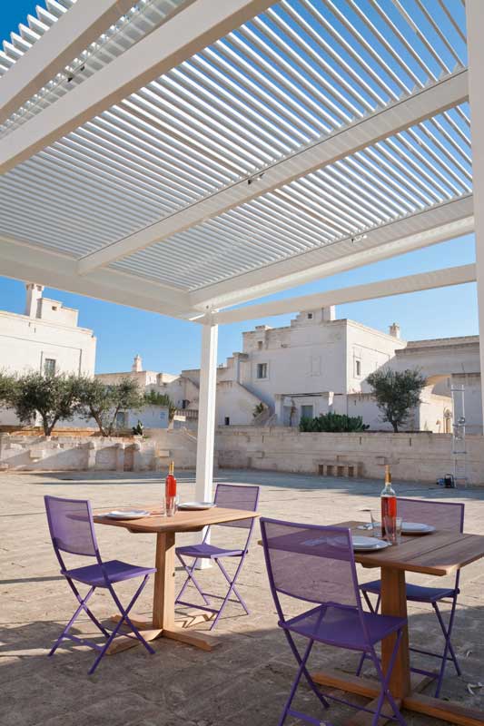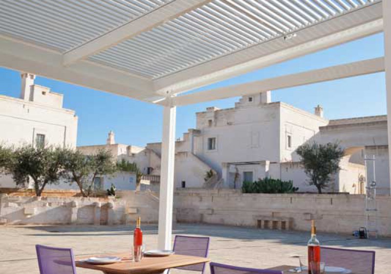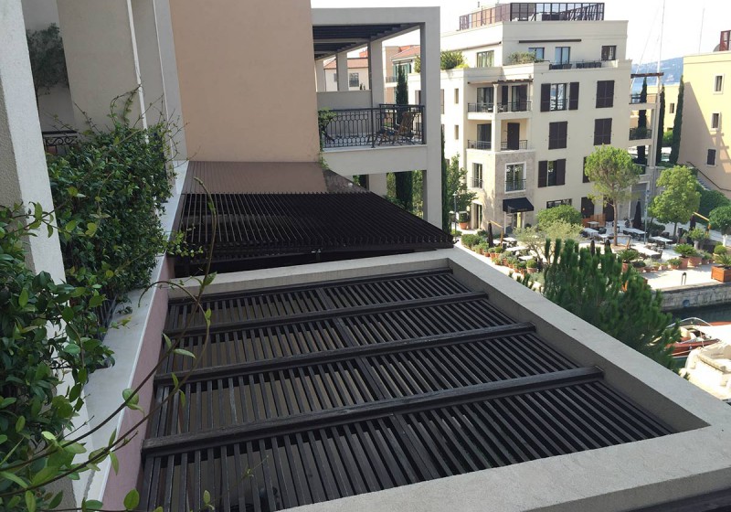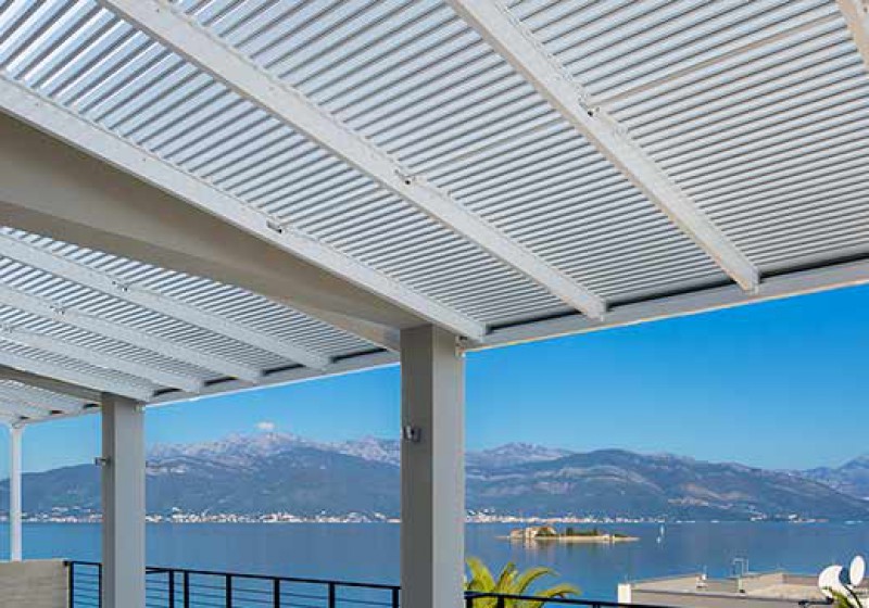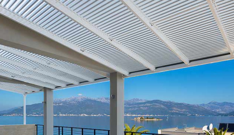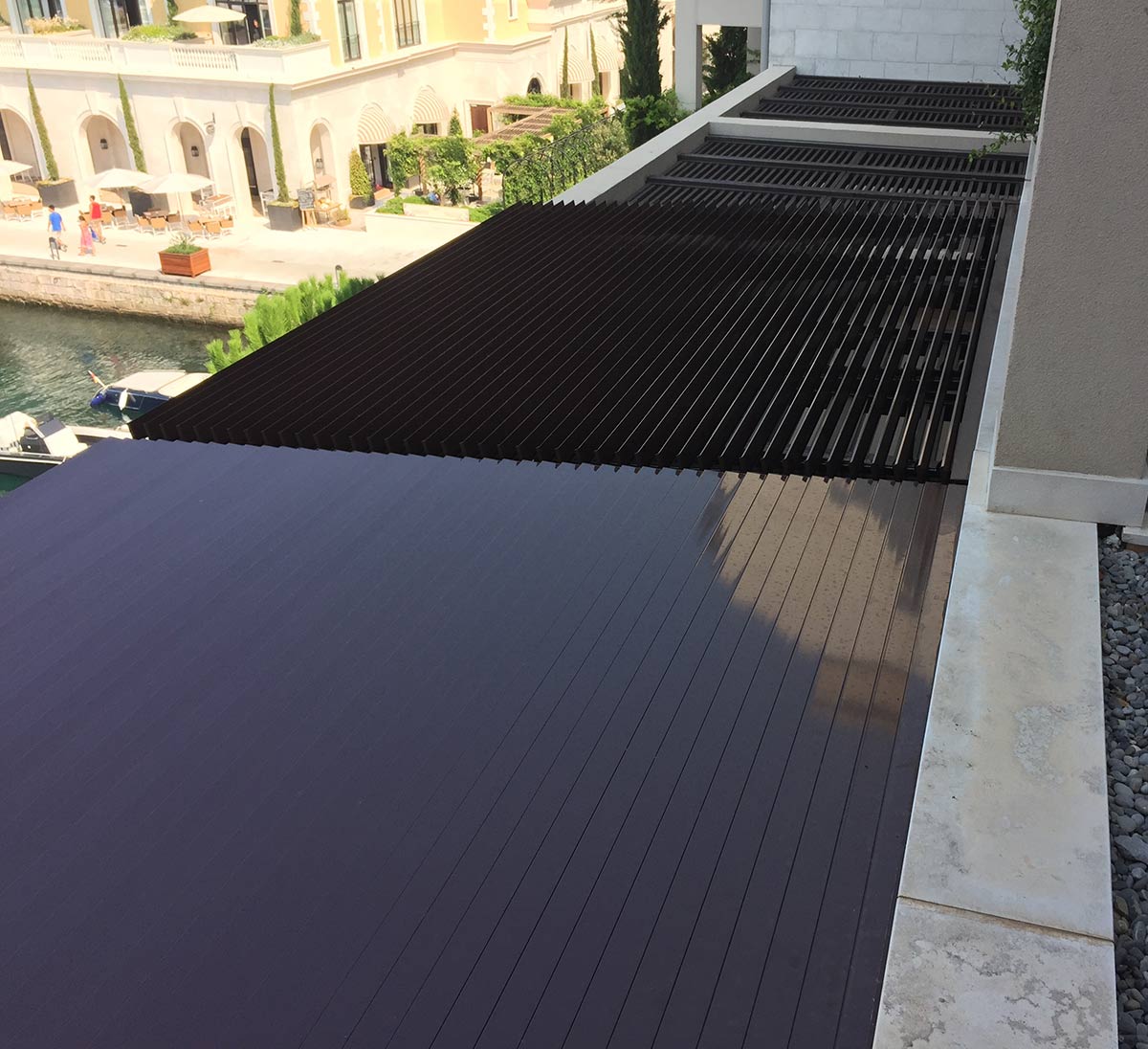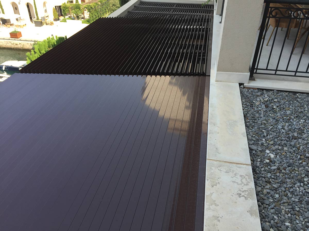 Zahvaljujući tome što je izgrađen od aluminijskih šipki čija pozicija može da se reguliše, ova struktura se perfektno zatvara garantujući maksimalnu zaštitu od sunca i perfektno zadržavanje kiše (do 6mm/h).